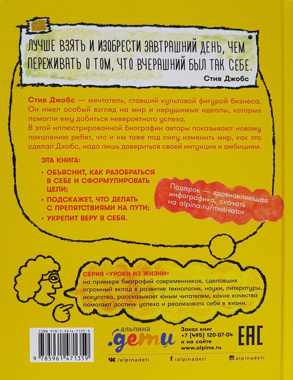 В этой иллюстрированной биографии авторы показывают новому поколению, что и им тоже под силу изменить мир, как это сделал Джобс. Надо лишь довериться своей интуиции и амбициям.