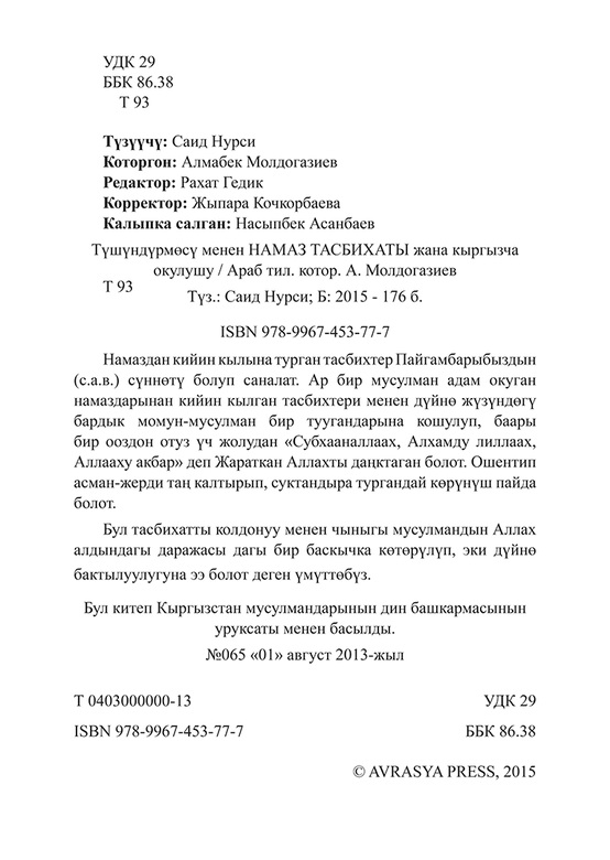 Бул китеп Кыргызстан мусулмандарынын дин башкармасынын