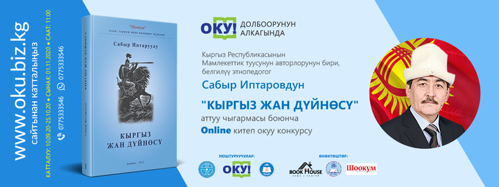 « Ыйык Ата Журт » коомдук жаштар фонду, « Оку! » басма үйү жана Кыргыз билим берүү академиясы менен биргеликте « Оку! » долбоору Сабыр Иптаровдун «Кыргыз жан дүйнөсү» китеби боюнча ONLINE китеп окуу конкурсун жарыялайт!